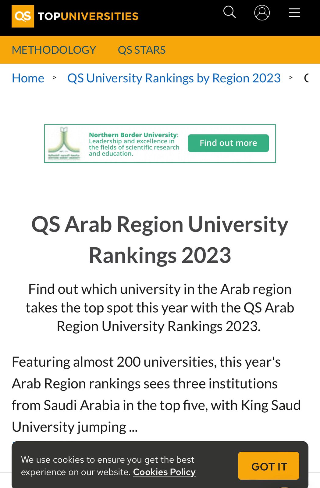 حققت جامعة القادسية مركزاً متقدماً بحسب تصنيف (QS Arab Region University Rankings 2023) الذي اصدر نتائج نسخته الخاصة بجامعات المنطقة العربية للعام 2023.