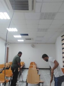 تضمنت الحملة استزراع شتلات الورد وتأهيل الحدائق والممرات وتنظيف القاعات والمختبرات والممرات والصحيات والاروقة المحيطة بعمادة الكلية.