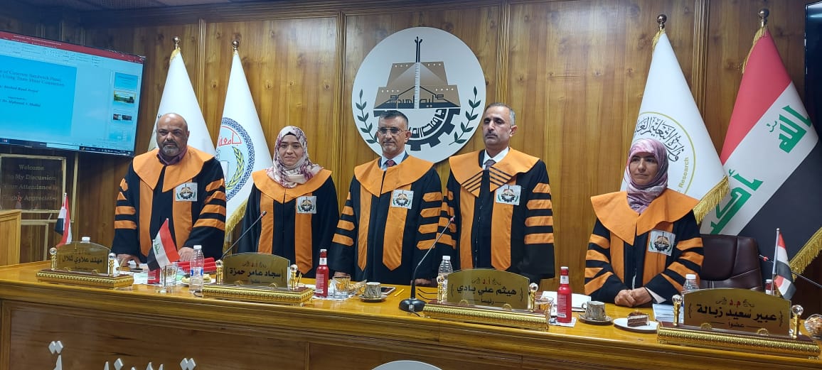 ناقش قسم الهندسة المدنية في كلية الهندسة بجامعة القادسية رسالة الماجستير الموسومة (سلوك السقوف الخرسانية احادية الاتجاه المحشوة بالعازل بوجود رباطات قص مسنمة) على قاعة مناقشات الدراسات العليا للطالبة رشد رعد جواد بإشراف أ.د. مهند علاوي شلال .