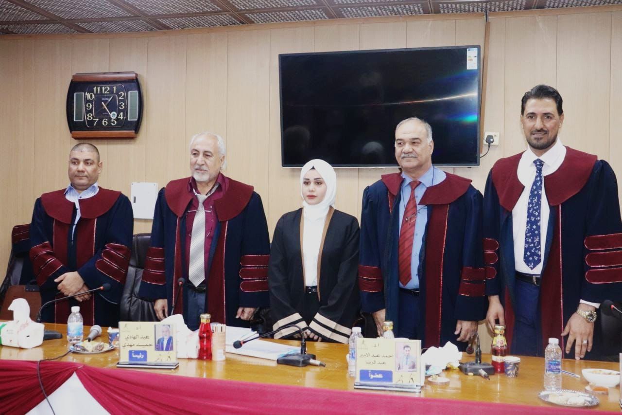 ناقشت رسالة ماجستير في كلية التربية البدنية وعلوم الرياضة جامعة القادسية مؤشرات طبعة القدمين واهم المتغيرات البايوميكانيكية ونسب مساهماتها في زمن الاستجابه الحركية لهجمة الايقاف بسلاح سيف المبارزه للاعبي المنتخب العراقي للطالبة فاطمة عقيل محمد .