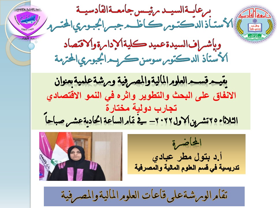 والاقتصاد / جامعة القادسية ورشة علمية بعنوان