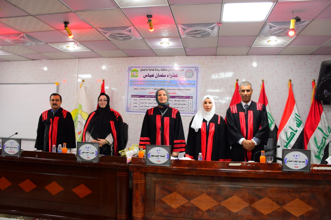ناقشت رسالة ماجستير في فرع الاحياء المجهرية بكلية الطب جامعة القادسية (دراسة تعدد الاشكال الجينية للبروتين الخافض للسطح المتعلق مع اصابة الفيروس الخلوي الشديدة)