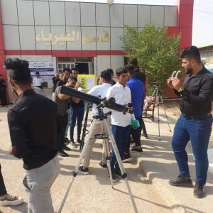 أقام قسم الفيزياء في كلية التربية بجامعة القادسية بالتعاون مع فريق الديوانية الفلكي ومرصد الصبار نشاط علمي لرصد كسوف الشمس الجزئي الذي حدث اليوم الثلاثاء 25/10/2022 .