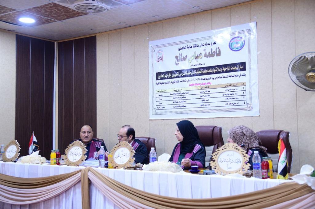 ناقشت رسالة الماجستير في كلية التربية جامعة القادسية والموسومة استراتيجيات المواجهة وعلاقتها بالمحاكمة العقلية لدى طلبة مدارس المتميزين واقرانهم العاديين