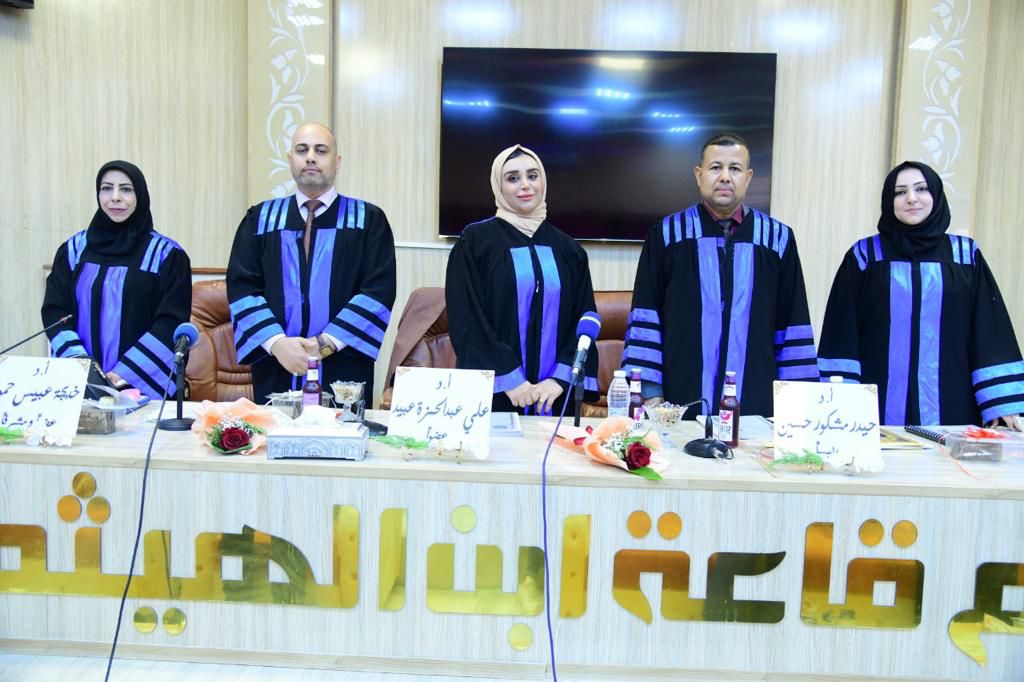 ناقشت رسالة ماجستير في قسم البيئة بكلية العلوم في جامعة القادسية تشخيص بعض الامراض المهنية وعن علاقتها بالمعاير الدموية والعناصر النزرة في مصل الدم للاشخاص المصابين للطالبة أطياف سامي سعيد .