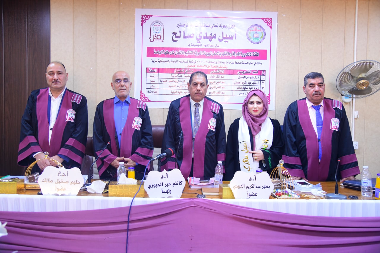 ناقشت رسالة الماجستير في كلية التربية بجامعة القادسية والموسومة(الثقة الاكاديمية المدركة وعلاقتها