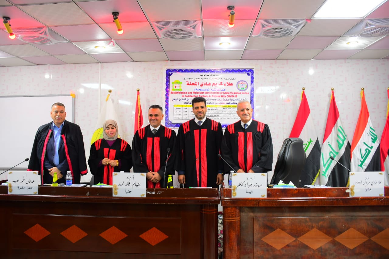 ناقشت رسالة ماجستير في فرع الاحياء المجهرية بكلية الطب جامعة القادسية (التشخيص الجرثومي و الجزيئي لبعض جينات الضراوة في بكتريا العدوى المشتركة لمرضى الكوفيد-19) للطالب علاء كريم هادي كاظم المحنة بأشراف أ.د. عدنان حمد الحمداني.