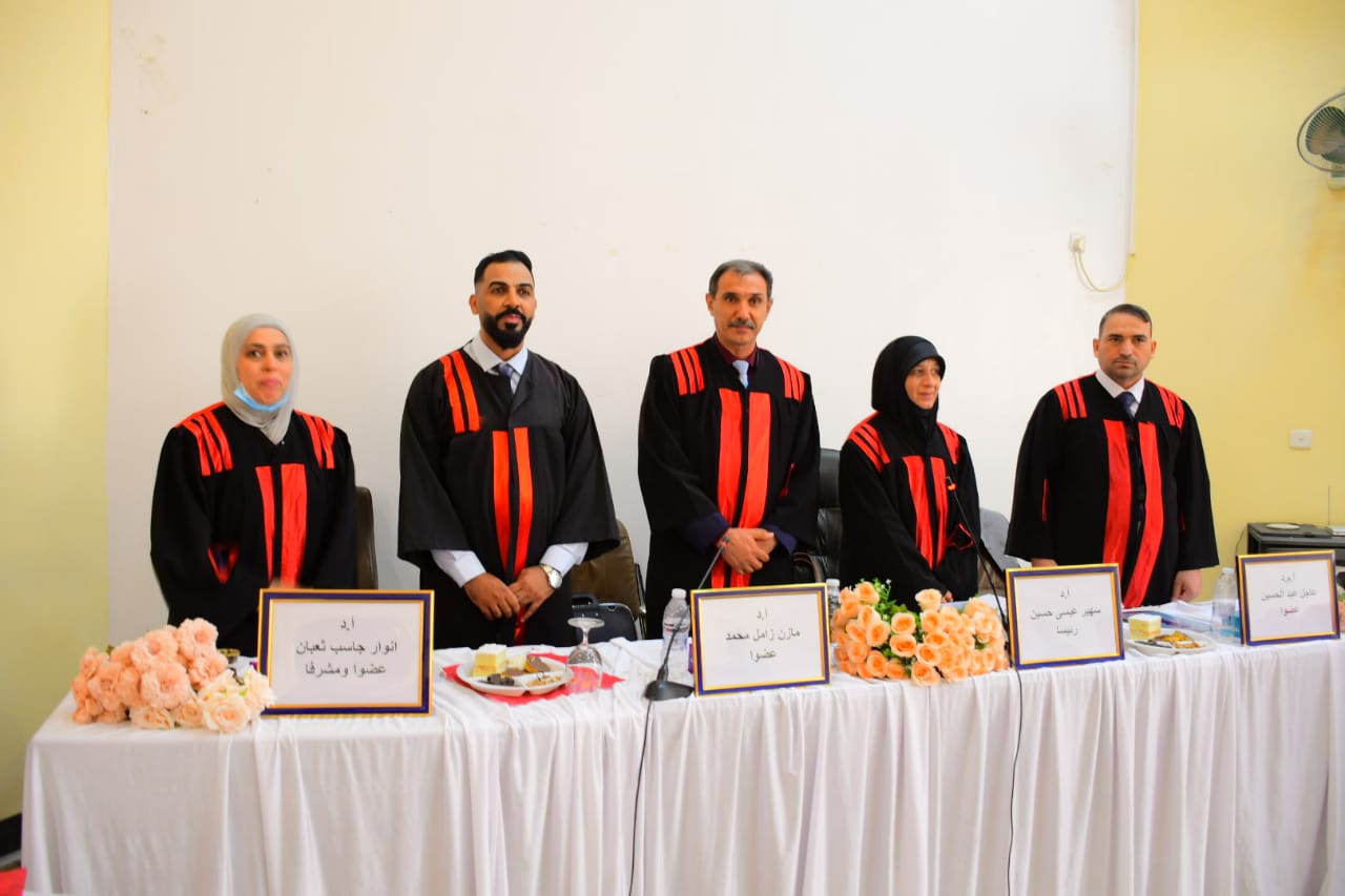 ناقشت رسالة ماجستير في فرع الكيمياء الحياتية السريرية بكلية الطب جامعة القادسية ( منشط البلازمينوجين بنظام البلازمين كمؤثر حيوي للالتهاب واعادة تشكيل سطح الخلية في امراض القلب الاقتصارية) للطالب عادل ناصر خيون بأشراف أ.د. انوار جاسب ثعبان