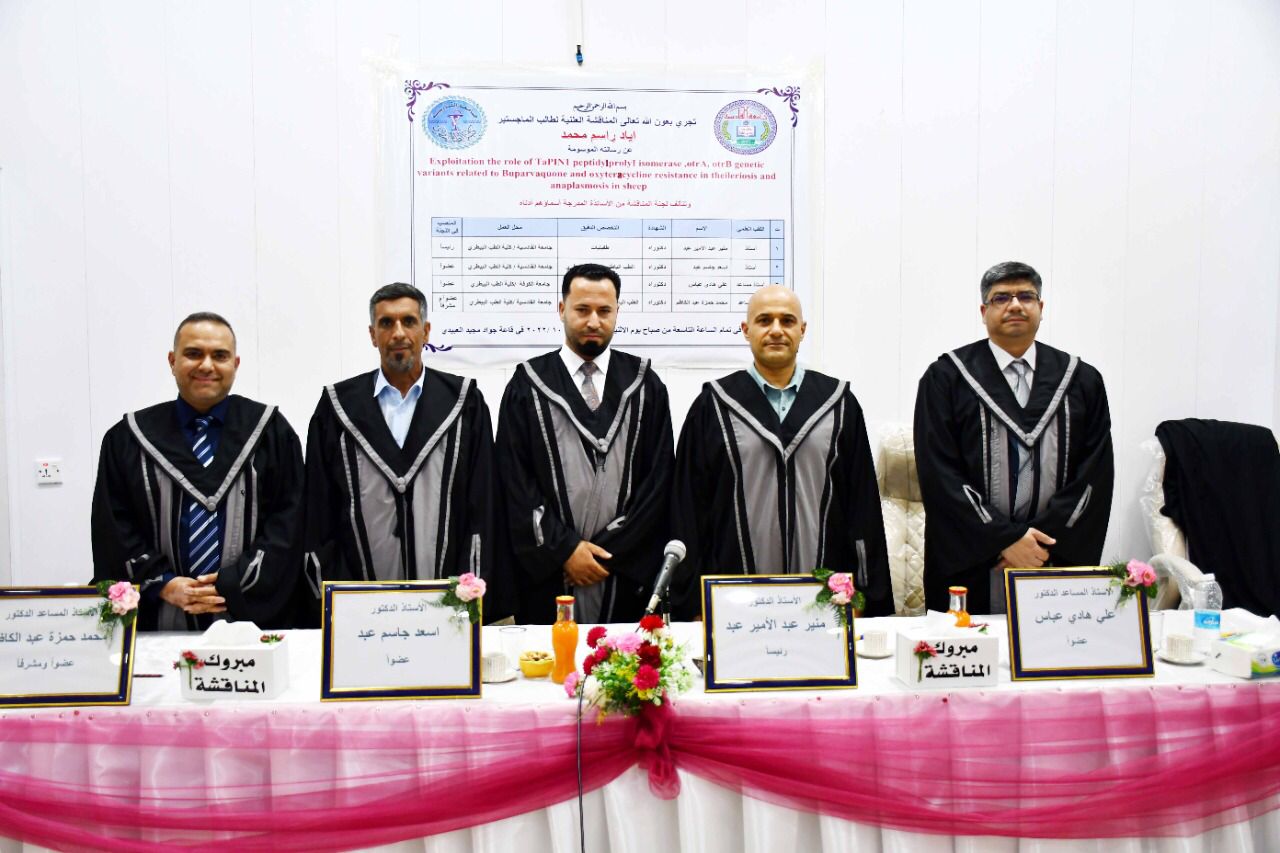 ناقشت رسالة ماجستير في كلية الطب البيطري بجامعة القادسية تشخيص بعض انواع الطفيليات الدموية (الثايليريا) باستخدام التقنية الجزيئيه (تفاعل سلسلة البلمرة اللحظي) والتي توجد مصاحبه للاصابه ببكتريا الانابلازما
