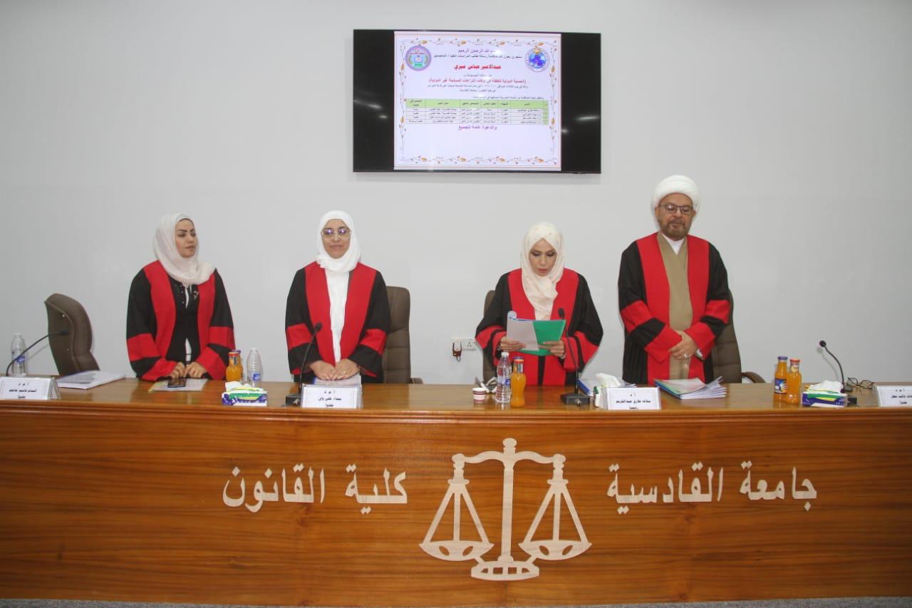 ناقشت رسالة الماجستير في كلية القانون بجامعة القادسية والموسومة(الحماية الدولية للطفلة في اوقات النزاعات المسلحة غير الدولية) للطالب عبدالامير عباس ميري .