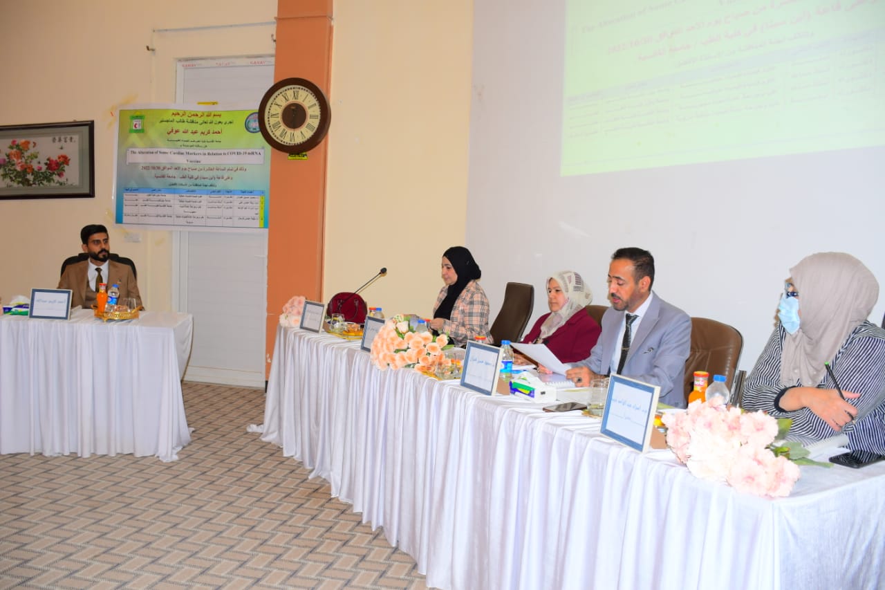 ناقشت رسالة ماجستير في فرع الكيمياء الحياتية السريرية تغيير بعض المؤشرات القلبية فيما يتعلق بلقاح كوفيد-19 mRNA في محافظة واسط للطالب احمد كريم عبد الله بأشراف أ.د. بثينه عباس فرحان