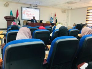 نظمت كلية التمريض بجامعة القادسية دورة علمية حول الأخطاء الطبية الشائعة وتأثيرها على المريض باشراف الاستاذ الدكتور رحيم جبار الحمزاوي مساعد رئيس الجامعة للشؤون العلمية عميد كلية التمريض وكالة