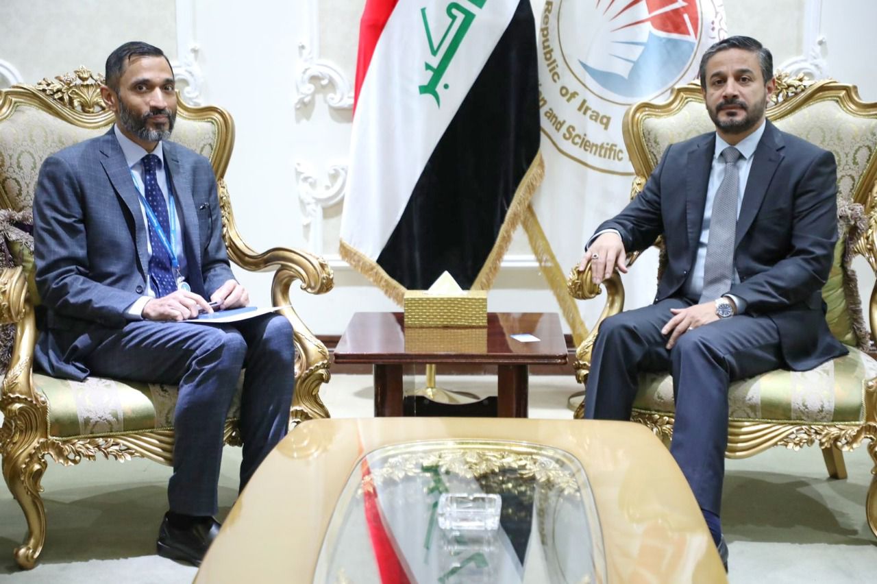 دعا وزير التعليم العالي والبحث العلمي الدكتور نعيم العبودي برنامج الأغذية العالمي للأمم المتحدة الى ورشة عمل مشتركة مع وزارة التعليم ومؤسساتها لتطوير مستويات التعاون في مجالات دعم الخريجين وبلورة برامج التنمية وتقييم سوق العمل.