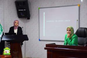 تناولت الدورة التوعية حول انواع اورام الثدي التي اصبحت من الاورام المنتشرة في المجتمع بين النساء وبفئة عمرية واسعة جدا من العشرينات والى الستينات وبنسب مختلفة ،كما تناولت الندوة تعليم النساء طريقة الفحص الذاتي للثدي وبشكل دوري ومنتظم كما بينا الشرائح الاكثر عرضة للإصابة وضرورة إجراء الفحص السرير من قبل طبيب مختص وإجراء الفحوصات الشعاعية الازمة. وبينا اهم الطرق الشعاعية الازمة لكل فئة عمرية وفما اذا كانت المراءة حامل او مرضع وتأثير كل طريقة ونتائجها المطلوبة.