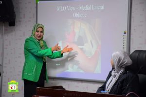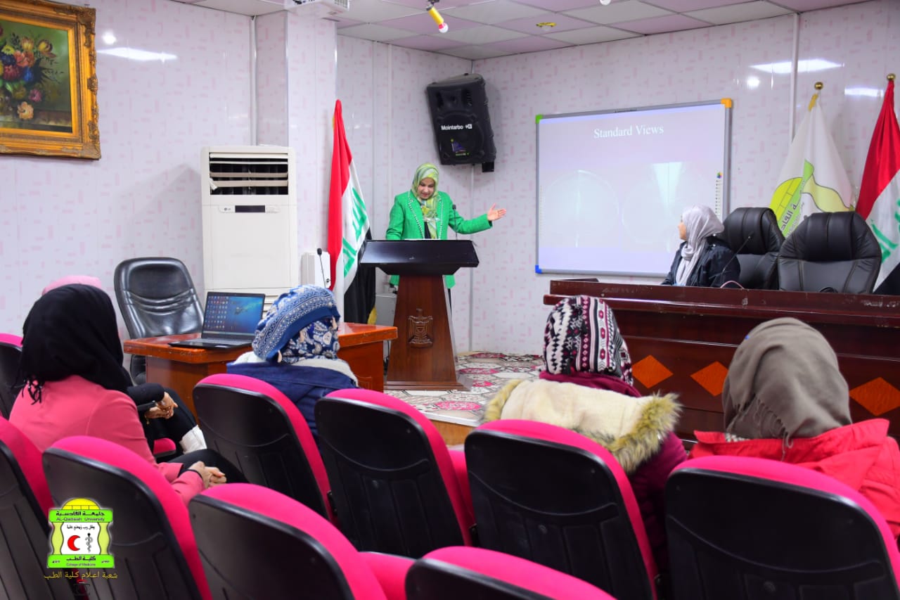قامت شعبة الاشعة والسونار / فرع الجراحة في كلية الطب بجامعة القادسية بدورة توعية حول اورام الثدي وطرق الفحص الشعاعي لها حاضر فيها :