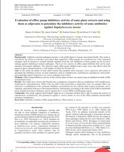 وتم خلال هذه الدراسة تقييم الفعل التثبيطي لبعض المستخلصات باستخدام مادة الاثيديوم برومايد وقد وجدت الدراسة من مادة البروبولس لها فعل تثبيطي قوي ضد بروتينات التدفق في بكتريا المكورات العنقودية واضهرت فقعل تأزري قوي مع بعض المضادات الحيوية مثل الارثرومايسين والجنتامايسين وتمكن هذه المادة من اعادة حساسية بكتريا المكورات العنقودية المقاومة للمضادات الحيوية المذكورة التي ترجع في الغالب الى القدرة التثبيطة لبروتينات التدفق