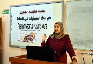 أقامت كلية الطب البيطري بجامعة القادسية حلقة نقاشية حول اهم انواع الطفيليات التي تصيب القطط .