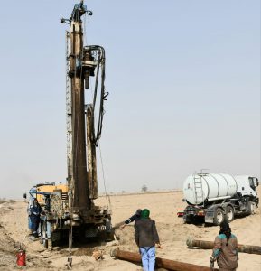 وبتوجيه معاليه الى وزارة الموارد المائية ، باشرت مديرية المياة الجوفية والشركة العامة لحفر الآبار وموقعها الرئيس الكائن بمحافظة النجف الاشرف بحفر (6) ست آبار ارتوازية في كلية الزراعة لمعالجة شحة المياه ، فضلاً عن توفير الكمية الكافية لإقامة المشاريع الزراعية التي تغطي مساحات كبرى من الكلية .