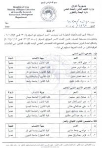 في انجاز علمي نوعي لاساتذة كليتنا المعطاء تم اختيار الاستاذين الاستاذ الدكتور عدنان عاجل عبيد معاون العميد للشؤون العلمية استاذ القانون الدستوري والاستاذ الدكتور اسعد فاضل منديل استاذ قانون المرافعات لعضوية اللجنة الوزارية لتحديث مناهج كليات القانون العراقية ضمن كوكبة لامعة من فقهاء القانون .