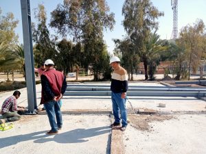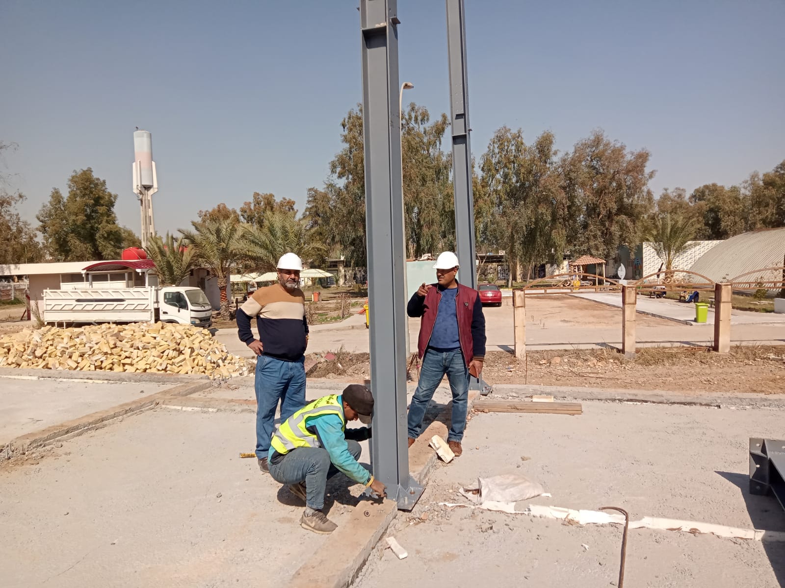 2023/2/15 قامت الوحدة الهندسية بتنصيب حديد الاعمدة ( H_pile ) وحسب القياسات المحددة وتم انجاز نسبة ( 30%) من القاعات متعددة الاغراض من أفضل أنواع الحديد وحسب الجودة المتفق عليها والشروط الخاصة بالعمل .