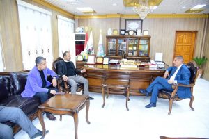استقبل السيد رئيس جامعة القادسية الاستاذ الدكتور كاظم جبر الجبوري المحترم بمكتبه مدير بلدية الديوانية رئيس مهندسين الاستاذ علي شعلان ذياب المحترم لبحث سبل العمل المشترك .