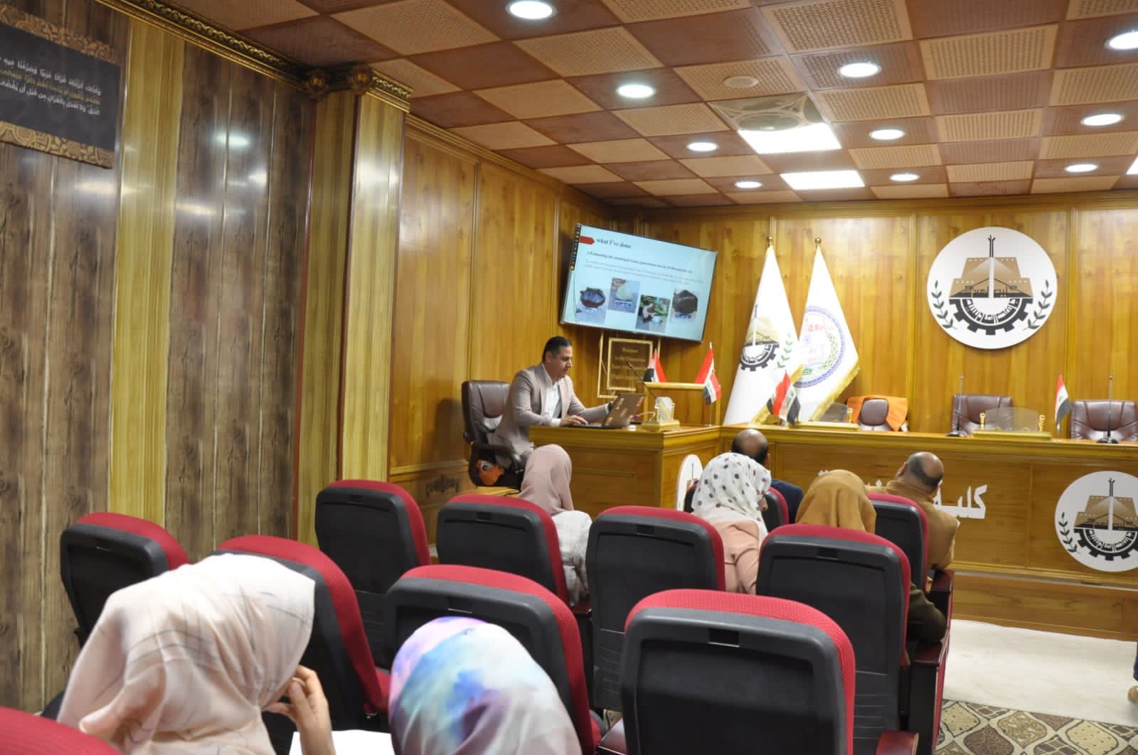 تضمنت المناقشات خمس بحوث في تخصص الهندسة البيئية بعناوين منها ازالة الاصباغ من مياه الصرف الصناعي باستخدام منتجات النفايات الزراعية مواد ماصة وكذلك مشروع تقيم ومحاكاة برك الاكسدة في محطات معالجة مياه الصرف الصحي لغرض اعادة استخدامها في الزراعة وغيرها .