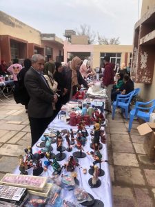 اقامت الكلية سوقاً خيرياً ( بازار) بمشاركة رؤساء الاقسام واساتذة الكلية وطالباتها لعرض المواهب الفنية والابداعية للطلبة والمتخرجين .