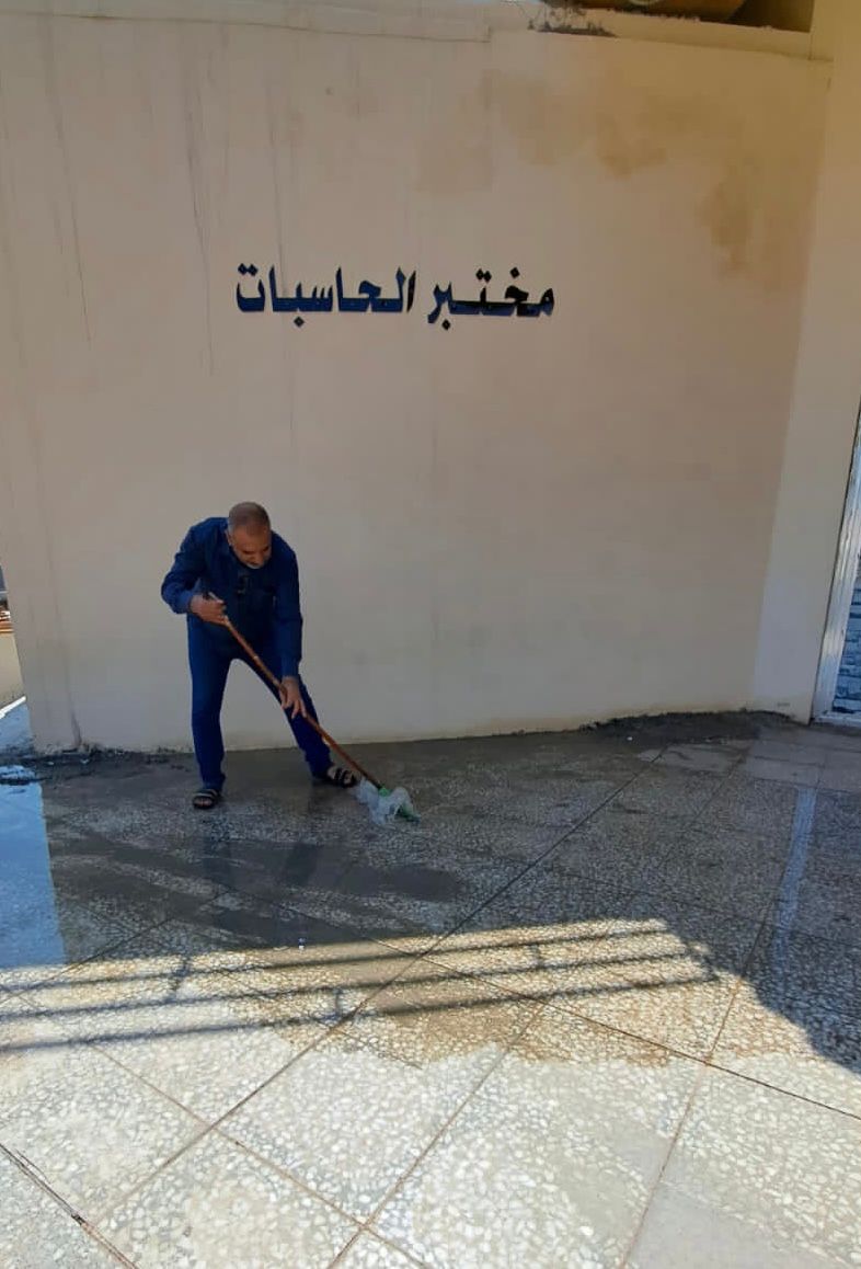 بتوجيه مباشر من قبل السيد رئيس الجامعة الاستاذ الدكتور كاظم جبر الجبوري واشراف مساعده للشؤون الادارية الاستاذ الدكتور اثير عبد الامير ومتابعة ميدانية من عمداء الكليات تواصل كليات الطب والصيدلة والتربية للبنات جهودها حتى ساعات متأخرة من أيام العطل الرسمية من أجل تأهيل البنية التحتية وتنظيف القاعات الدراسية والاروقة الجامعية وسحب بقايا الامطار من الكليات .