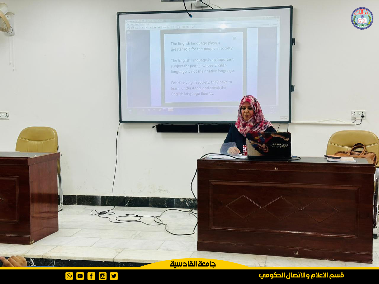 اقيمت في كلية التمريض ندوة علمية المشاكل التي يتعرض لها الطلاب في التحدث باللغة الإنكليزية حاضر فيها المدرس المساعد كميلة كاظم عبد