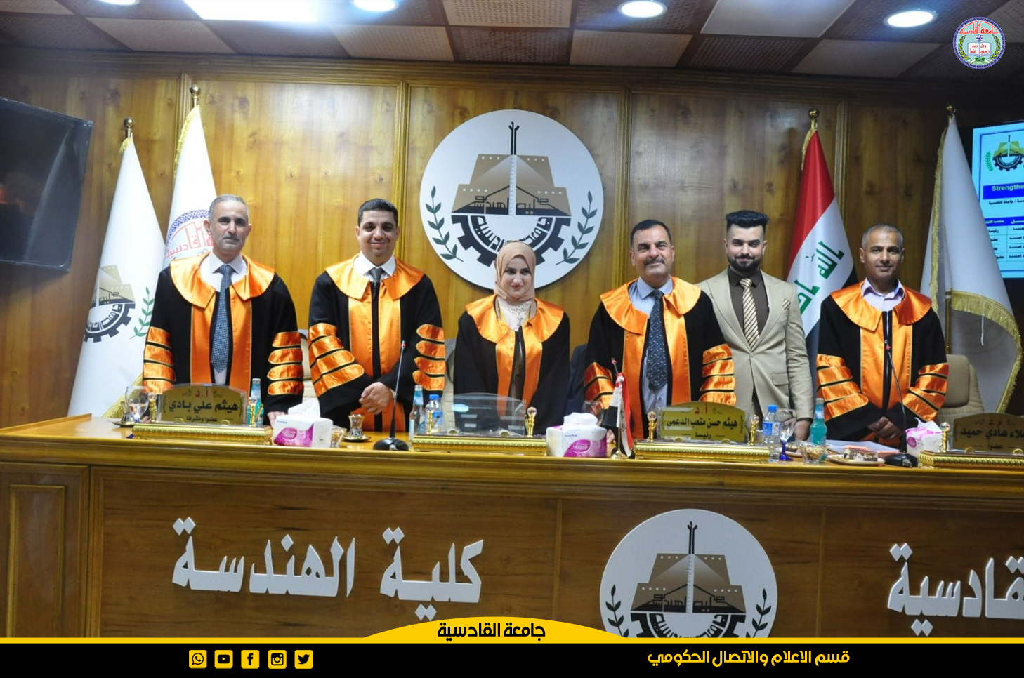 ناقش قسم الهندسة المدنية في كلية الهندسة بجامعة القادسية رسالة الماجستير الموسومة (تقوية الأعمدة الخرسانية المسلحة باستخدام قضبان الفولاذ والالياف البوليمرية الزجاجية المثبتة بالقرب من سطح الخرسانة تحت احمال لا مركزية) على قاعة مناقشات الدراسات العليا للطالبة نبراس عطية كاظم وبإشراف أ.د هيثم علي بادي