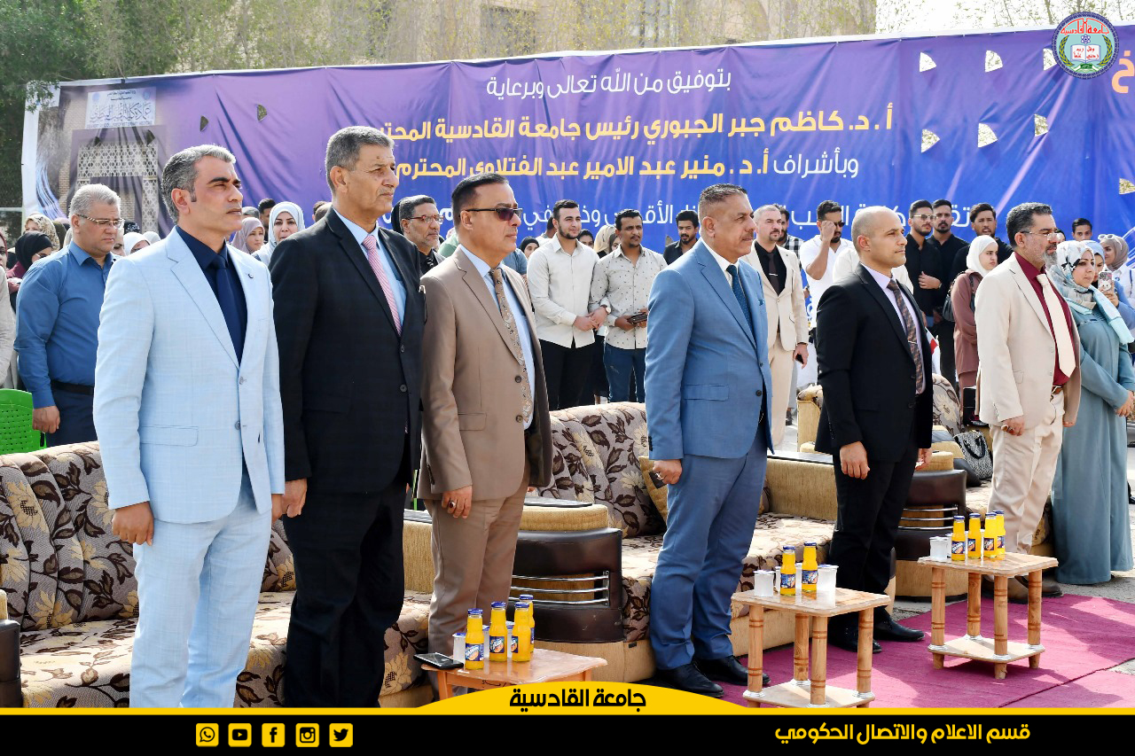 برعاية الاستاذ الدكتور كاظم جبر الجبوري رئيس جامعة القادسية وبحضور الاستاذ الدكتور ستار عبد الحسن الفتلاوي مساعد رئيس الجامعة للشؤون العلمية وبإشراف عميد كلية الطب البيطري الاستاذ الدكتور منير عبد الامير عبد الفتلاوي أقامت كلية الطب البيطري بجامعة القادسية بازارها السنوي تحت عنوان (بازار الاقصى )