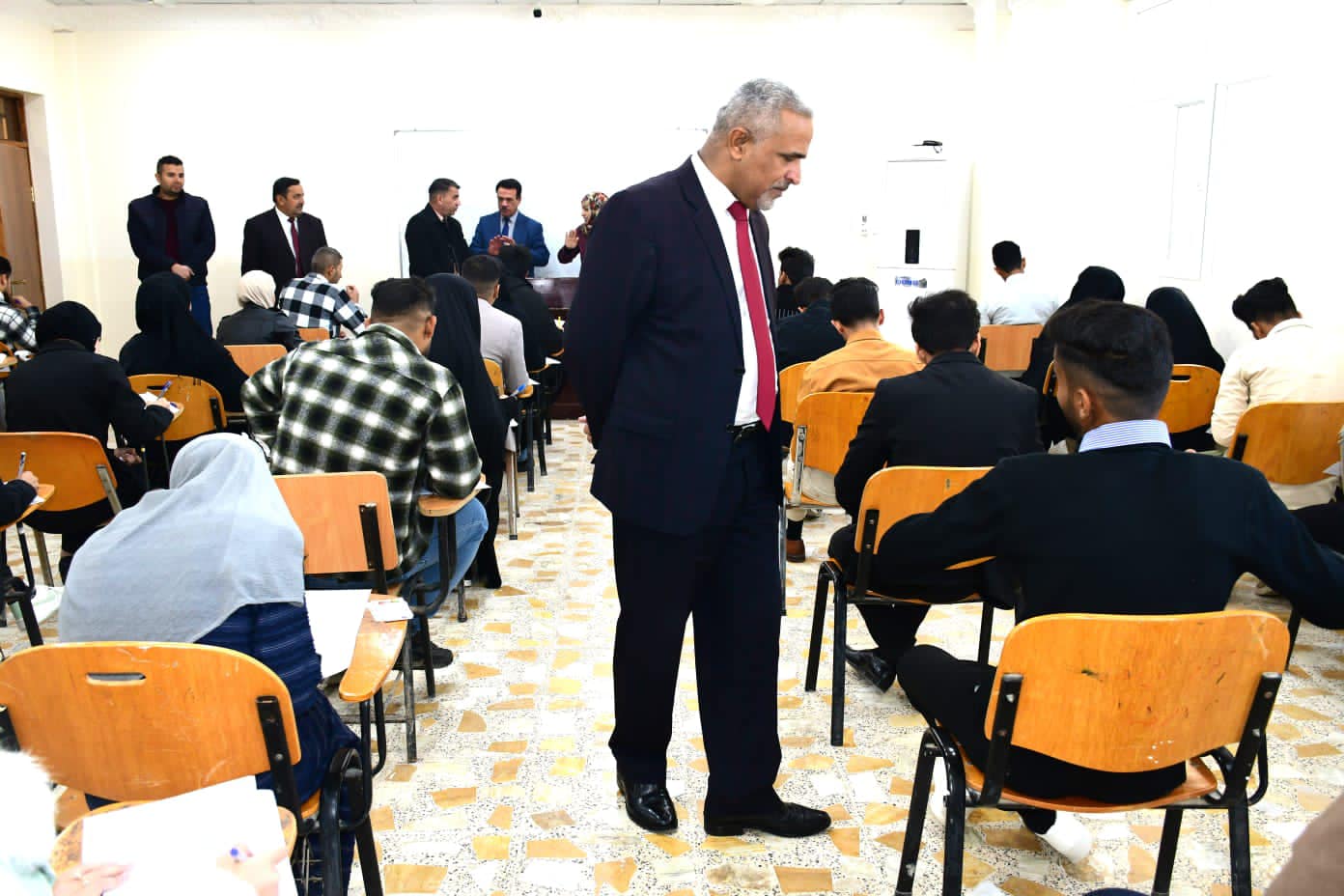 أجرى السيد مساعد رئيس جامعة القادسية للشؤون العلمية الاستاذ الدكتور ستار عبد الحسن الفتلاوي برفقة اعضاء لجنة المتابعة المركزية للامتحانات زيارة تفقدية للقاعات الامتحانية في كلية الزراعة بجامعة القادسية للاطلاع على سير الامتحانات الحضورية لنهاية الفصل الدراسي الأول لطلبة الدراسات الاولية والعليا بحضور عميد الكلية الاستاذ الدكتور حياوي ويوة عطية الجوذري ومعاونه العلمي.