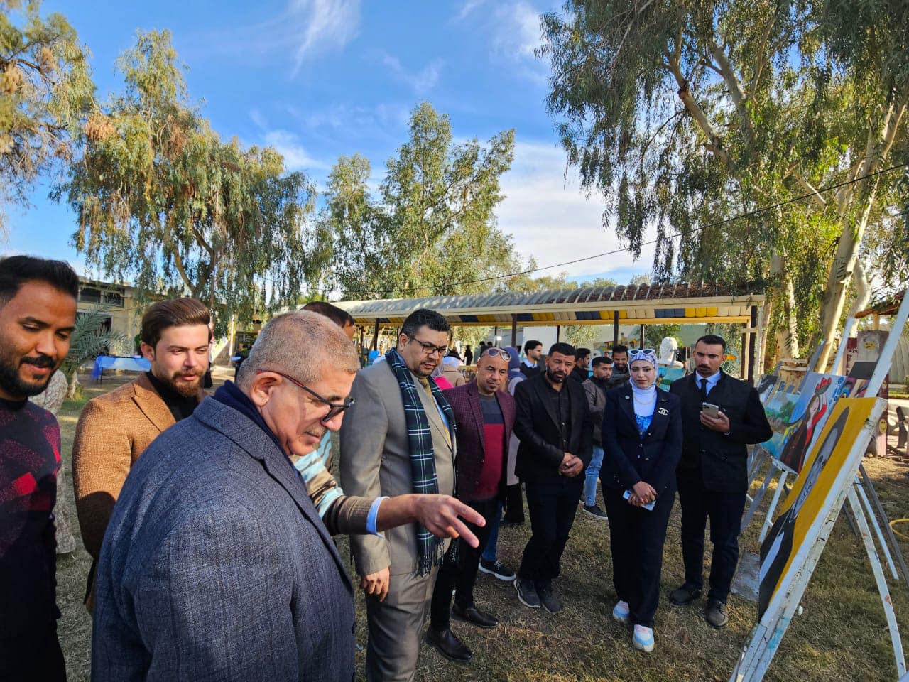 برعاية السيد رئيس جامعة القادسية الاستاذ الدكتور كاظم جبر الجبوري وبحضور ومتابعة السيد عميد كلية الفنون الجميلة الاستاذ الدكتور كاظم نوير الزبيدي اقيم في رحاب حدائق الكلية معرض فني مشترك للرسم بالتخطيط والالوان وباشراف تدريسي المادة الاستاذ المساعد الدكتور احمد علي السعيدي الذي استعرض خلال افتتاح المعرض مجموعة اللوحات الفنية وتقديمه مع طلبته شرح وافي عن اهم ماتضمنته موضوعات اللوحات كالبورترية والطبيعية والستلايف بتقنيات فنية وتجارب لونية مختلفة ومتنوعة رسمتها انامل الطلبة