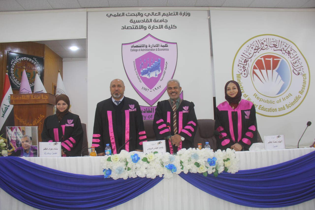 نُوقش في قسم إدارة الأعمال بحث الدبلوم العالي الموسوم ب( دور الذكاء الاستراتيجي في إدارة الأزمات) للطالب معد فارس عباس الحمداني وبإشراف الاستاذ الدكتور حامد كاظم متعب الشيباوي