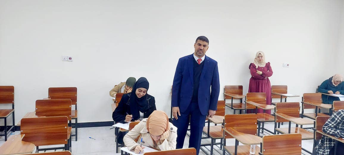 واطلع السيد العميد على القاعات الامتحانية ومستوى الخدمات التي وفرتها الكلية للطلبة لتمكينهم من اداء الامتحان بيسر وسهولة