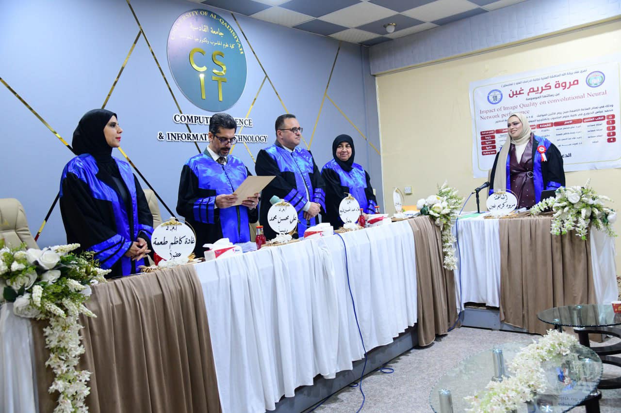 نوقشت رسالة ماجستير في كلية علوم الحاسوب وتكنولوجيا المعلومات الموسومة بـ( تأثير تشويه الصورة على أداء الشبكة العصبية التلافيفية) للباحثة مروة كريم غبن وبإشراف الأستاذ الدكتور لمياء عبد نور محمد