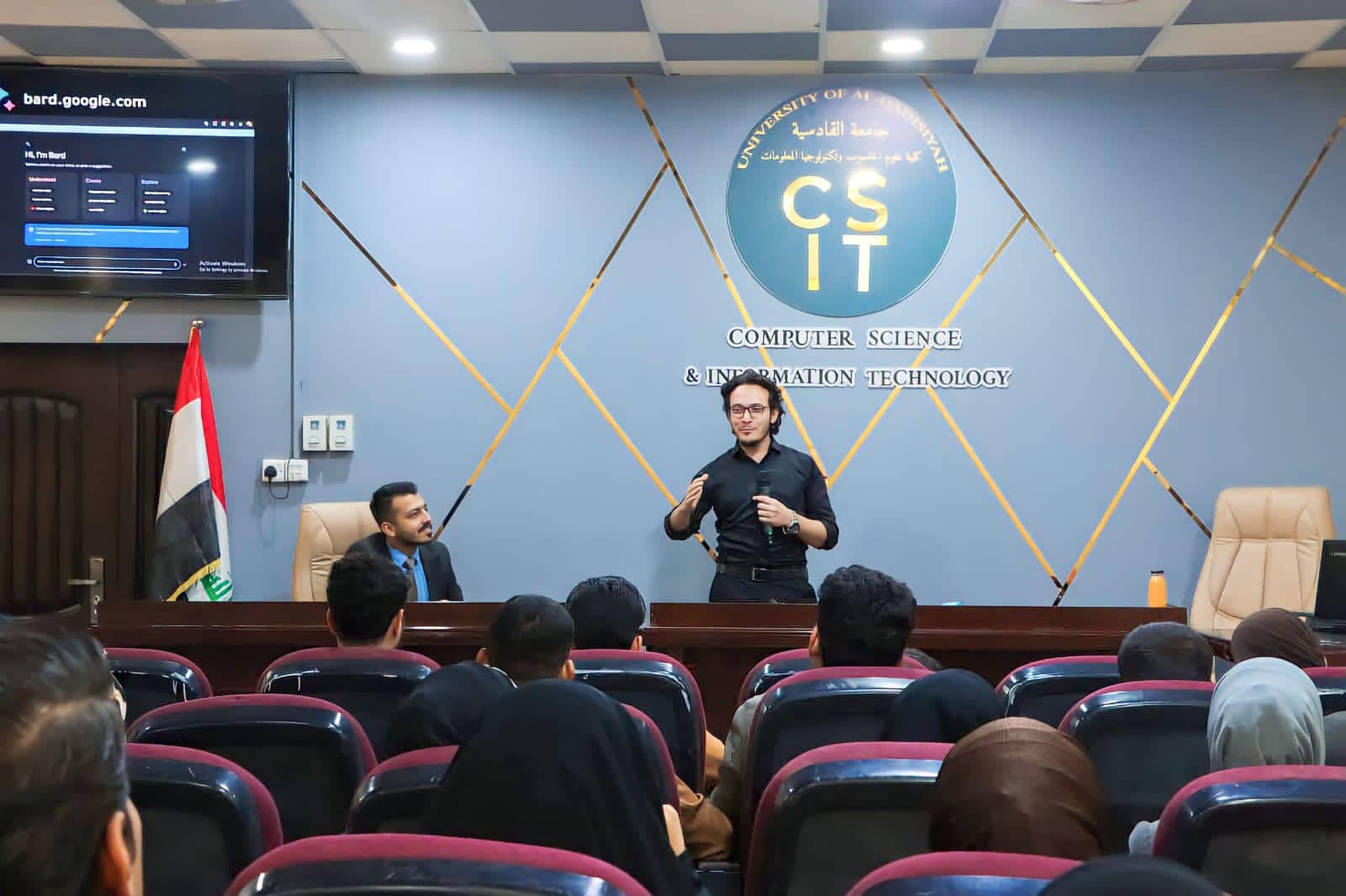 حاضر فيها المهندس حسين الخضيري ممثلاً عن مبادرة “البرمجة من أجل العراق” حيث تمت مناقشة مواضيع شيقة تتضمن تاريخ ونشأة الذكاء الاصطناعي، وأهم الأدوات المستخدمة في هذا المجال، وكيف يمكن استثمار الذكاء الاصطناعي في المجال العلمي والمهني كما تم التطرق إلى أحدث التطورات في هذا المجال، مع تقديم نصائح تدريبية في هندسة تلقين الآلة