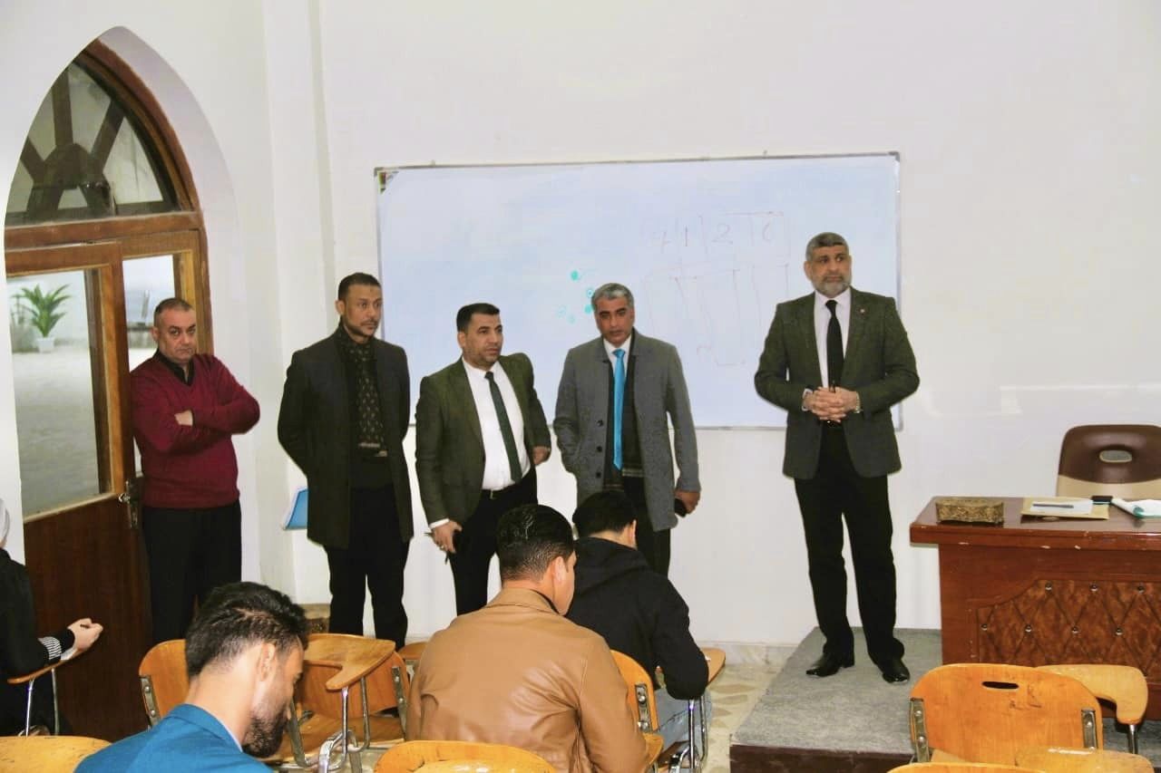 أجرى السيد مساعد رئيس جامعة القادسية للشؤون العلمية الاستاذ الدكتور ستار عبد الحسن الفتلاوي برفقة اعضاء لجنة المتابعة المركزية للامتحانات زيارة تفقدية للقاعات الامتحانية في كلية القانون للاطلاع على سير الامتحانات الحضورية لنهاية الفصل الدراسي الأول لطلبة الدراسات الاولية والعليا بحضور عميد الكلية الاستاذ الدكتور نظام جبار طالب ومعاونه العلمي الاستاذ الدكتور عدنان عاجل .
