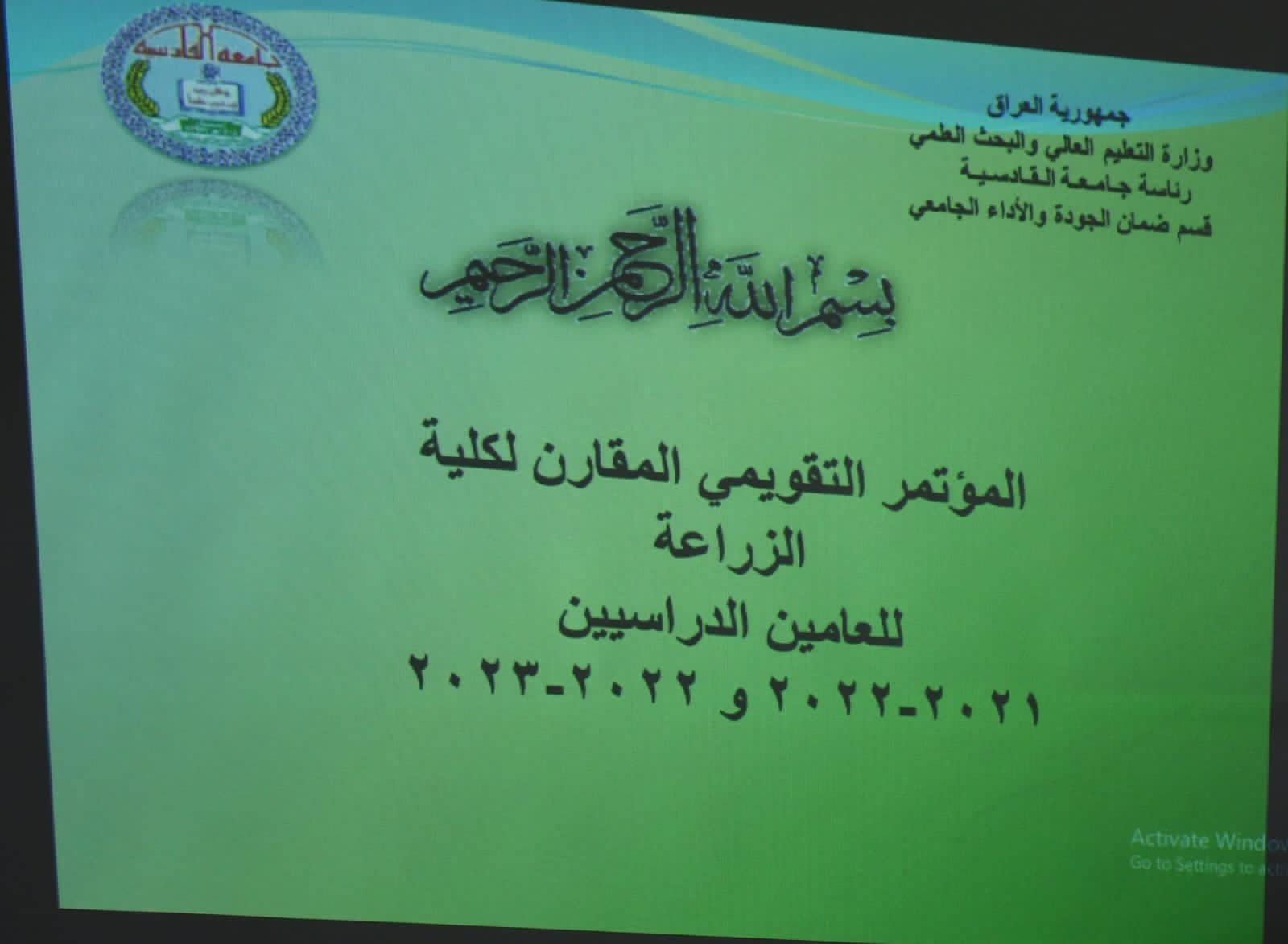 برعاية السيد رئيس جامعة القادسية الاستاذ الدكتور كاظم جبر الجبوري وباشراف الأستاذ الدكتور حياوي ويوه الجوذري عميد كلية الزراعة اقامت الكلية مؤتمرها التقويمي السنوي للعامين الدراسيين 2021-2022 و 2022-2023 وعلى قاعة المناقشات في الكلية