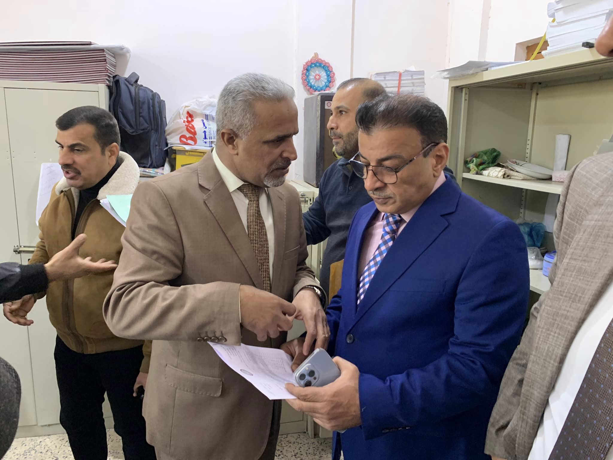 أجرى السيد مساعد رئيس جامعة القادسية للشؤون العلمية الاستاذ الدكتور ستار عبد الحسن الفتلاوي برفقة اعضاء لجنة المتابعة المركزية للامتحانات زيارة تفقدية للقاعات الامتحانية في كلية التربية للبنات للاطلاع على سير الامتحانات الحضورية لنهاية الفصل الدراسي الأول لطلبة الدراسات الاولية والعليا بحضور عميد الكلية الاستاذ الدكتورة مي علي عزيز ومعاونيها العلمي والاداري .