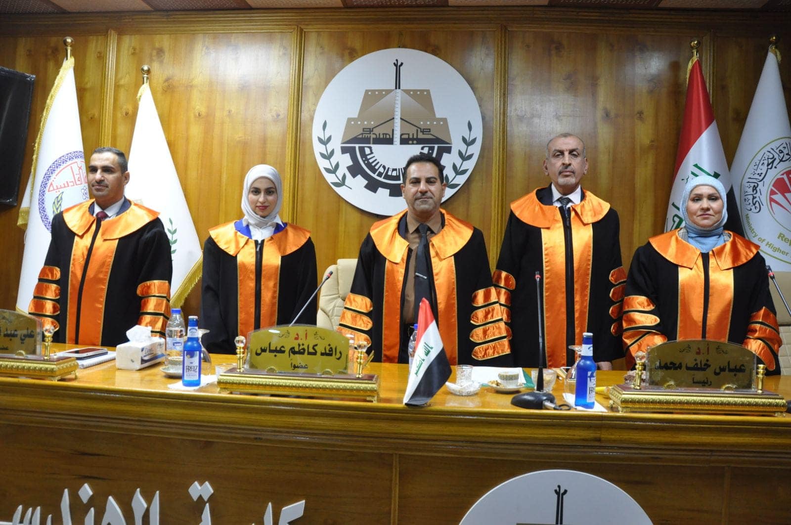 ناقش قسم الهندسة الكيمياوية في كلية الهندسة بجامعة القادسية رسالة الماجستير الموسومة (استعمال الماء كمصدر للهيدروجين في عملية ازالة الاوكسجين المائي التحفيزية للكتلة الحيوية) على قاعة مناقشات الدراسات العليا للطالبة فوز ظافر يحيى القزويني وبإشراف أ.د علي عبد الحسين الخالدي