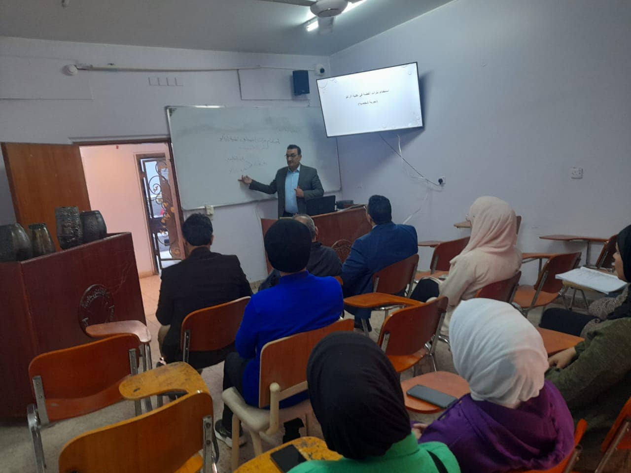 عقدت في كلية الفنون الجميلة ندوة علمية بعنوان (استخدام نترات الفضة في تقنية الراكو…..تجربة شخصية) حاضر فيها ا.م.د.مصطفى جواد كاظم التدريسي في قسم التربية الفنية وادار الندوة السيد رئيس القسم ا.م.د.محمد الشبيلي