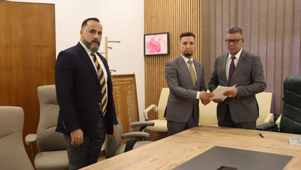 وقع السيد عميد كلية الآثار الأستاذ المساعد الدكتور رجوان فيصل الميالي إجازة تنقيب مع السيد رئيس الهيئة العامة للأثار والتراث علي عبيد شلغم