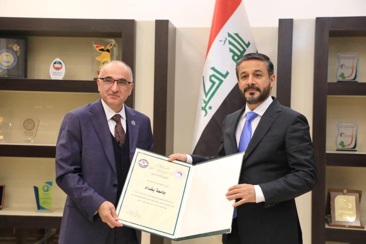 كرم وزير التعليم العالي والبحث العلمي الدكتور نعيم العبودي الجامعات الحكومية التي حققت المراكز الثلاثة المتقدمة في نتائج التصنيف العراقي للجامعات.