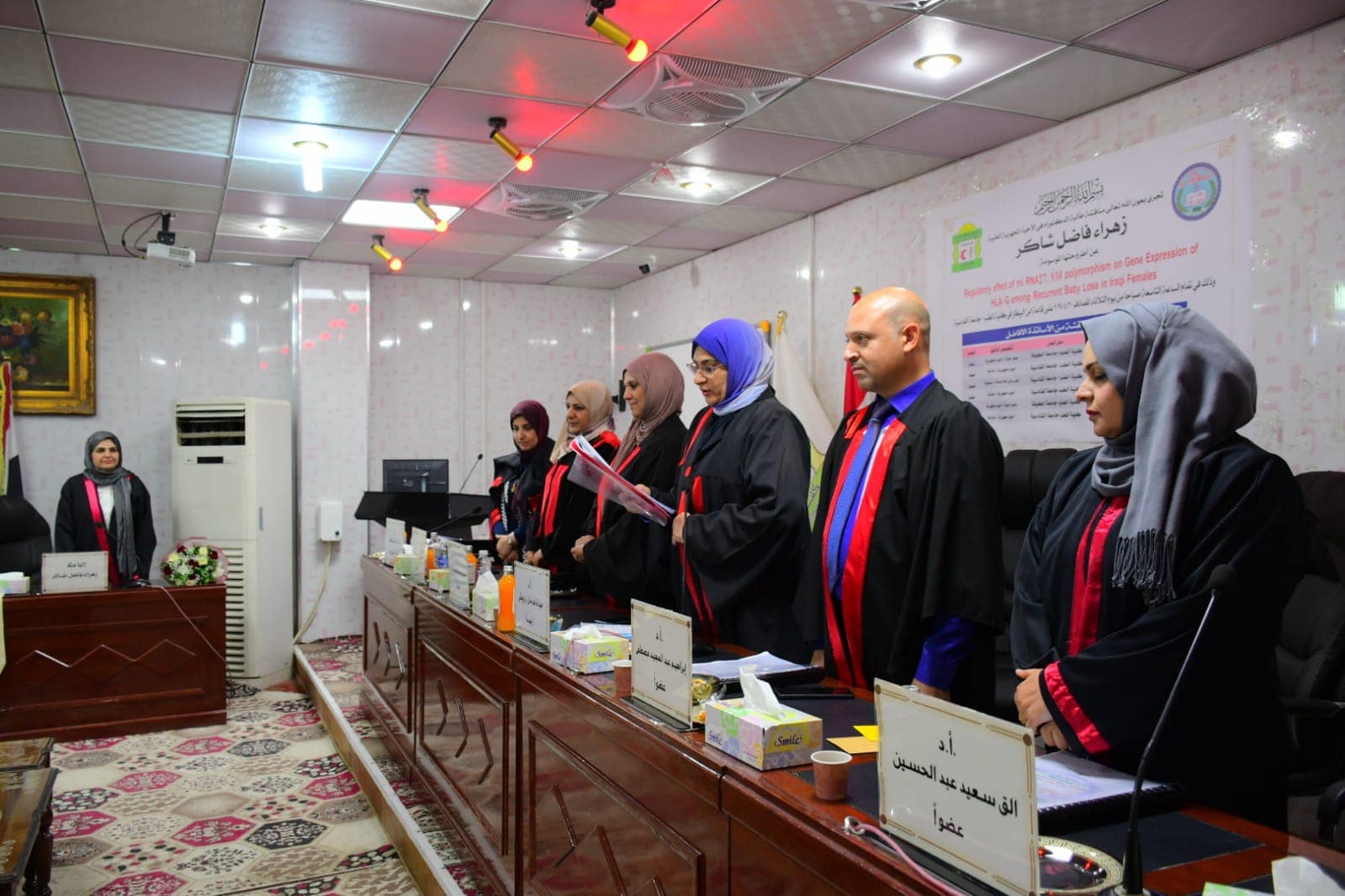 ناقش فرع الاحياء المجهرية الطبية بكلية الطب في جامعة القادسية اطروحة دكتوراه بعنوان (التأثير التنظيمي لتعدد أشكال mi RNA27,938 على التعبير الجيني للـمستضد كرية الدم البيض للمصابين بفقدان الجنين المتكرر عند الإناث العراقيات) للطالبة زهراء فاضل شاكر وبإشراف أ.د. منال محمد كاظم