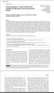 نشر المدرس المساعد عمار عبد الحمزة الغزالي بحثا علميا بعنوان Iraqi Population Trusts in Electronic Healthcare Records: A Cross-sectional Study