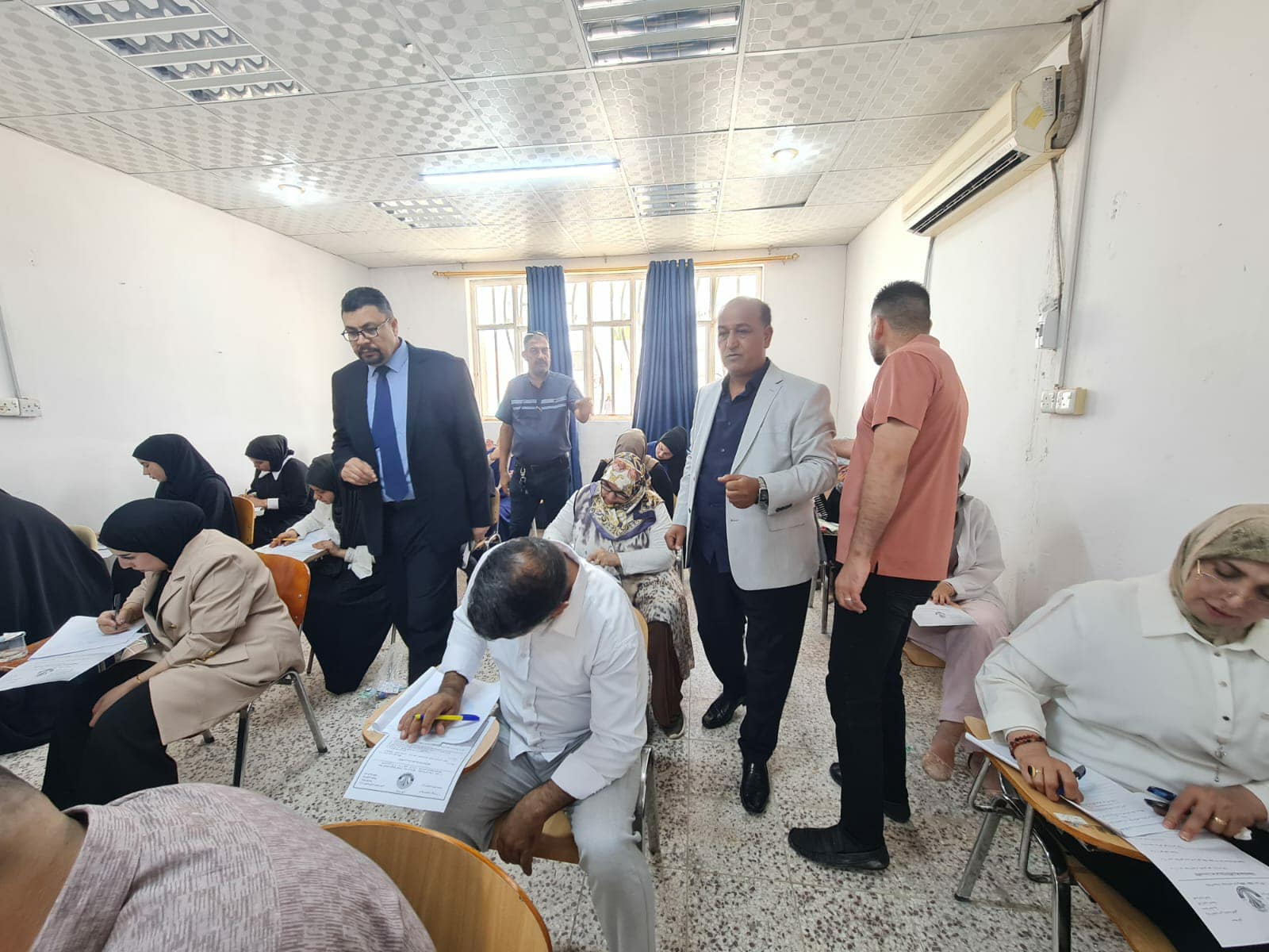 وقد اجرى السيد عميد كلية الفنون الجميلة الاستاذ الدكتور كاظم نوير الزبيدي وبمعية السيد معاون العميد الاداري ا.م.د.حليم هاتف جاسم والسيد المعاون العلمي ا.م.د.علي جرد الحميري والسادة روؤساء الاقسام العلمية ا.م.د.محمد جاسم الشبيلي رئيس قسم التربية الفنية وا.م.د.مهند ابراهيم العميدي رئيس قسم الفنون المسرحية وبحضور اعضاء اللجنتين الامتحانية المركزية والفرعية في الكلية زيارة تفقدية للقاعات الامتحانية للاطلاع على سير الامتحانات الحضورية النهائية لطلبة الدراسات الاولية الصباحية والمسائية في الكلية.