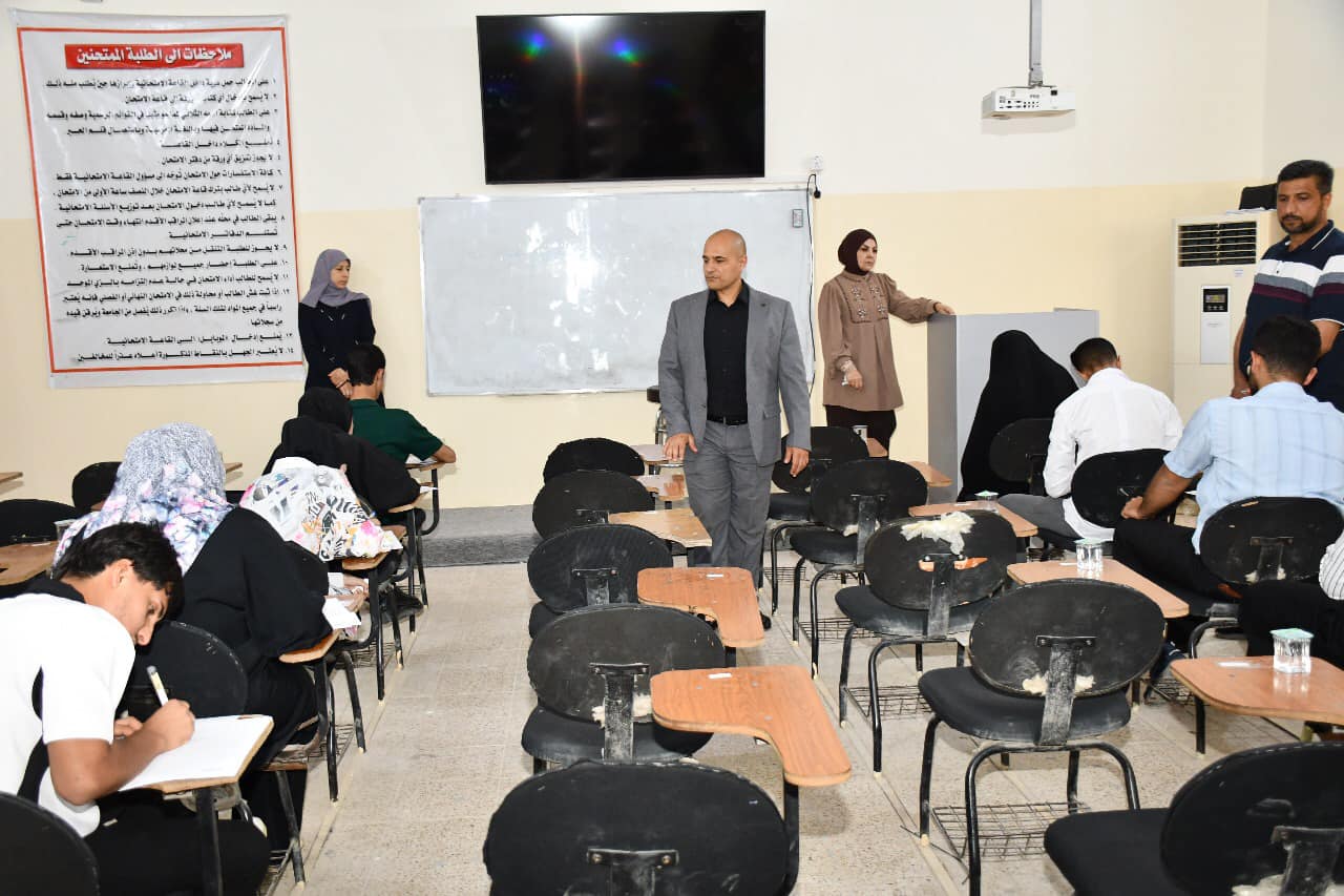 برعاية الاستاذ الدكتور كاظم جبر الجبوري رئيس جامعة القادسية وبإشراف ومتابعة السيد عميد كلية الطب البيطري أ.د. منير عبد الامير عبد الفتلاوي وبجهود اللجنة الامتحانية باشرت الكلية بالامتحانات النهائي لطلبة الدراسات الاولية ولكافة المراحل وقد تمت متابعة سير اجواء الامتحان من قبل السيد عميد الكلية واستطلاع اراء الطلبة حول الاسئلة الامتحانية ومتابعة اجواء الامتحان وسلامة الاجراءات