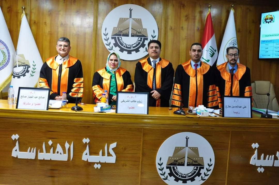 ناقش قسم الهندسة الكيمياوية في كلية الهندسة بجامعة القادسية رسالة الماجستير الموسومة بـ(تأثير معامل انتقال الكتلة على أداء خلية الوقود الميكروبية لزالة الكبريتيد ) للطالب حسن يونس علي وبإشراف أ.د صالح عبد الجبار صالح