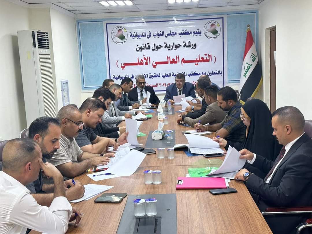 بدعوة من مكتب مجلس النواب العراقي في محافظة الديوانية تدريسي من كلية القانون بجامعة القادسية يشترك في الجلسة الحوارية لمناقشة مشروع قانون التعليم العالي الاهلي حيث اشترك م.د علي حمزة جبر في الجلسة الحوارية التي انعقدت في مبنى مكتب مجلس النواب العراقي في محافظة الديوانية وذلك لغرض مناقشة مشروع قانون التعليم الجامعي الاهلي الذي يتألف من احدى وخمسين مادة استهدفت بمجملها تنظيم التعليم الجامعي الاهلي وألية استحداث الجامعات والكليات الاهلية ، وبيان المركز القانوني للتدريسيين والموظفين في هذه الجامعات والكليات والمعاهد الاهلية